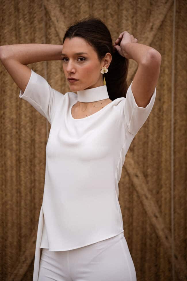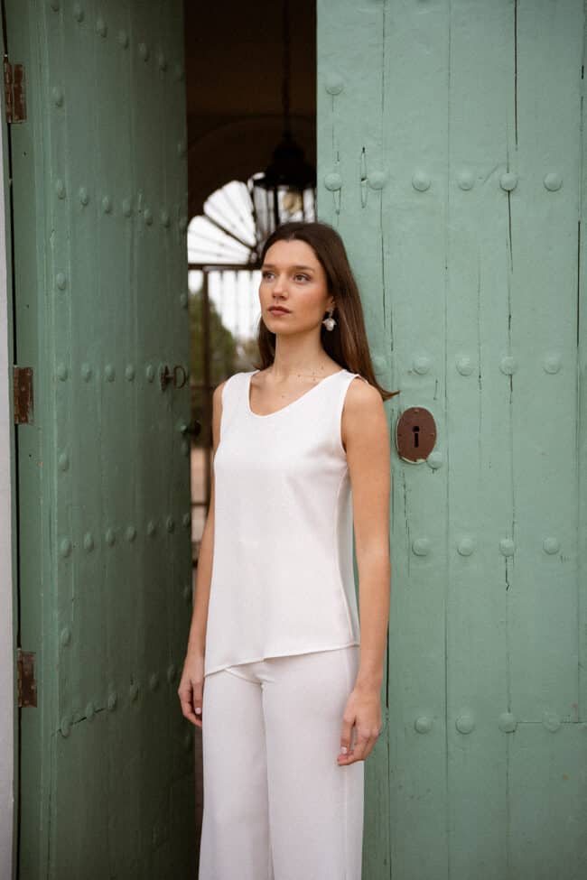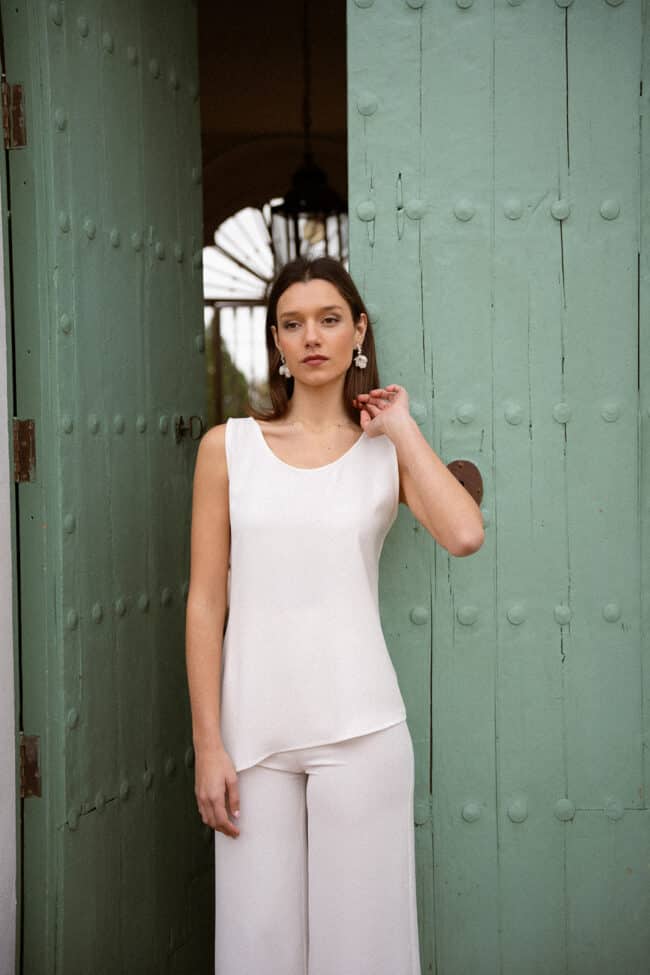Pantalón crudo con cierre posterior con cremallera invisible . Combínalo con el top Natasha, top Carmela o kimono Carmela. Es el conjunto ideal para aquellas que apuestan por set de dos piezas elegantes y cómodos.